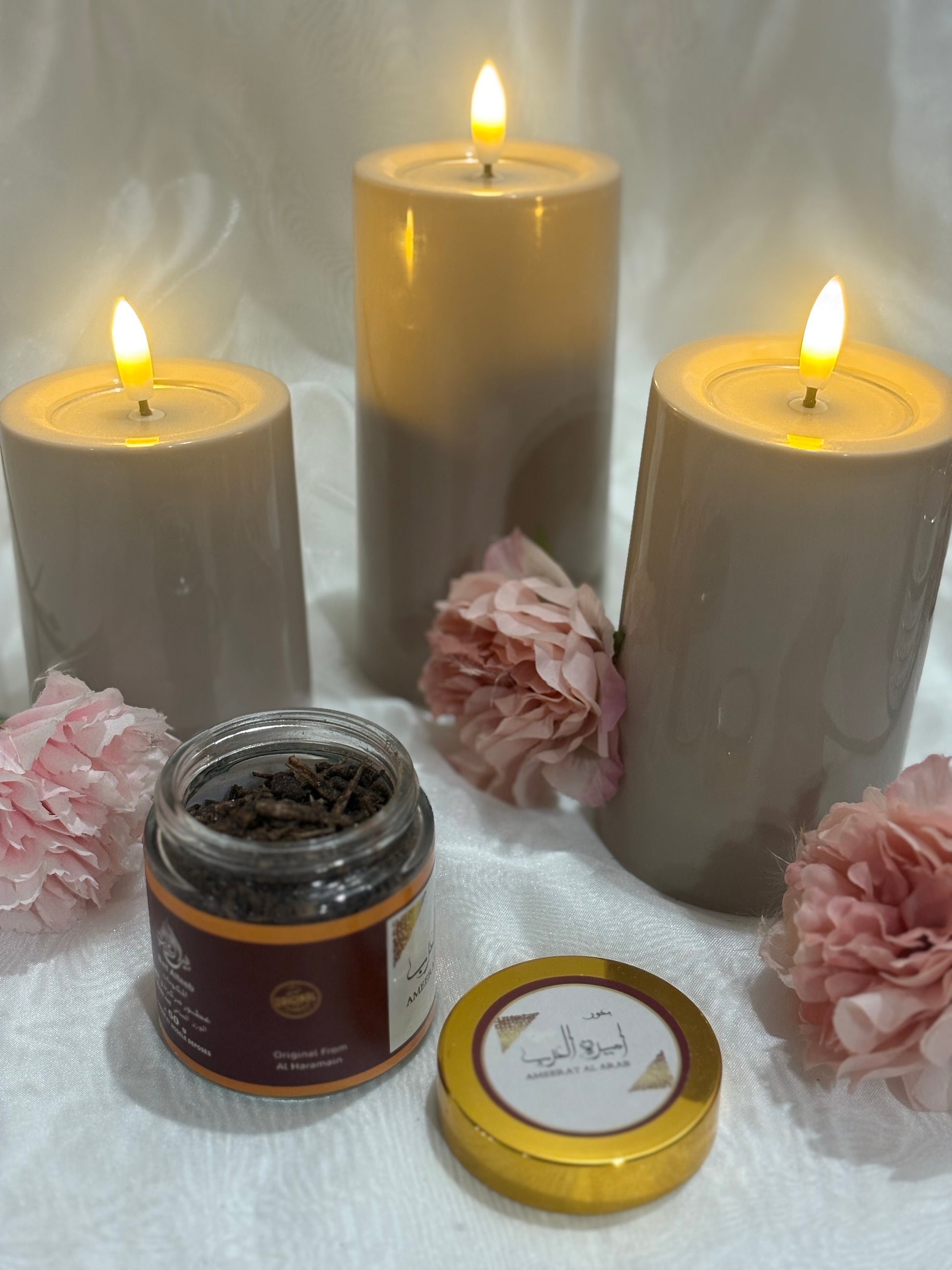 Découvrez le bakhour Ameerat Al Arab, une création olfactive envoûtante qui vous transporte au cœur d’un véritable conte de fées oriental. Cet encens raffiné vous séduira immédiatement par son mélange harmonieux et subtil de notes florales délicates. Le jasmin voluptueux, la rose majestueuse et le lys élégant s’entrelacent délicieusement, tandis que les accords boisés chauds d'oud précieux et le musc séduisant viennent intensifier et approfondir cette fragrance unique.