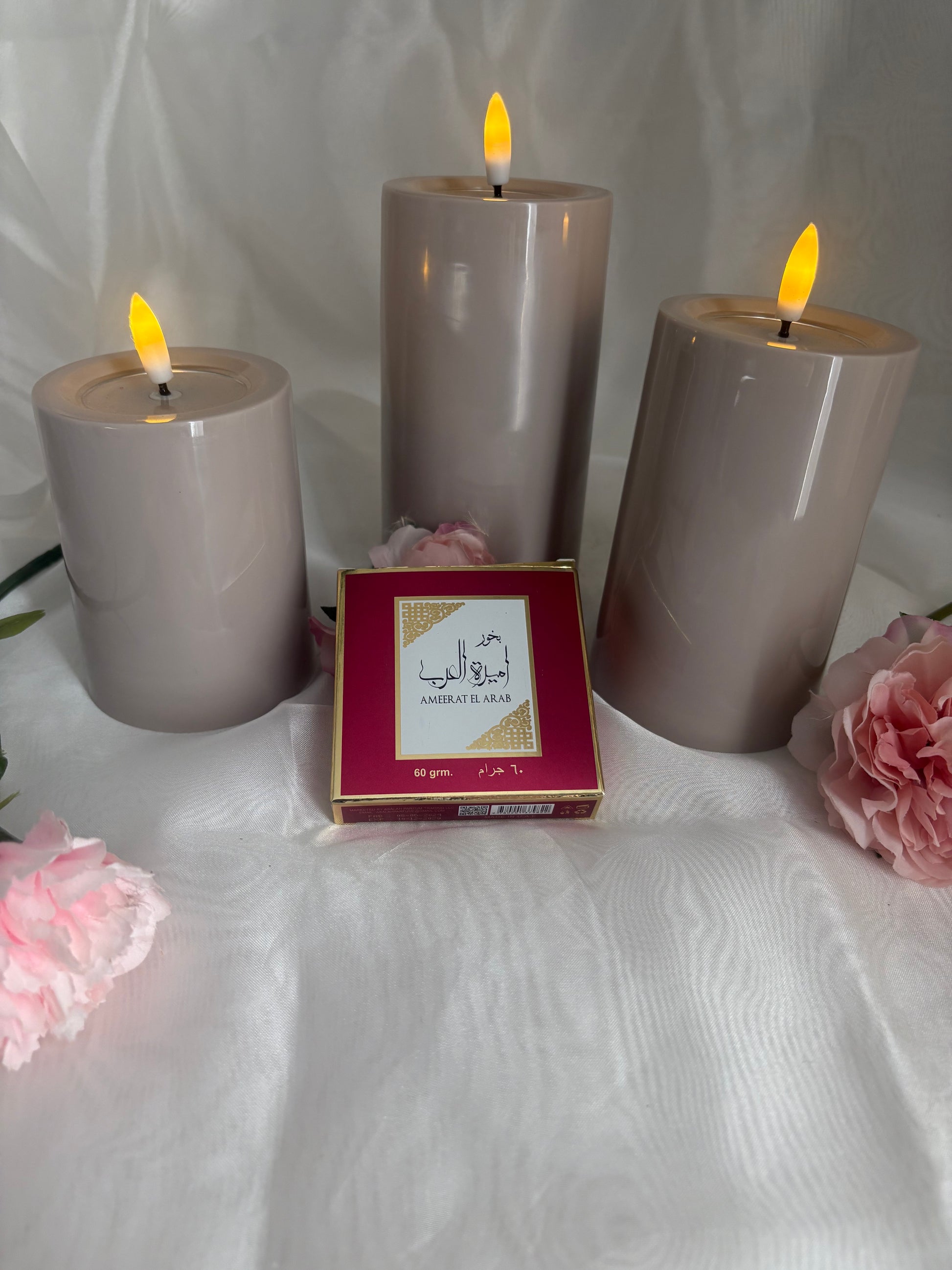 Découvrez le bakhour en tablette Ameerat Al Arab, une création olfactive envoûtante qui vous transporte au cœur d’un véritable conte de fées oriental. Cet encens raffiné vous séduira immédiatement par son mélange harmonieux et subtil de notes florales délicates. Le jasmin voluptueux, la rose majestueuse et le lys élégant s’entrelacent délicieusement, tandis que les accords boisés chauds d'oud précieux et le musc séduisant viennent intensifier et approfondir cette fragrance unique.